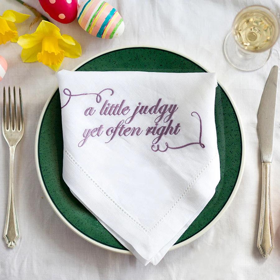 A Little Judgy Yet Often Right Embroidered French Linen Napkin
