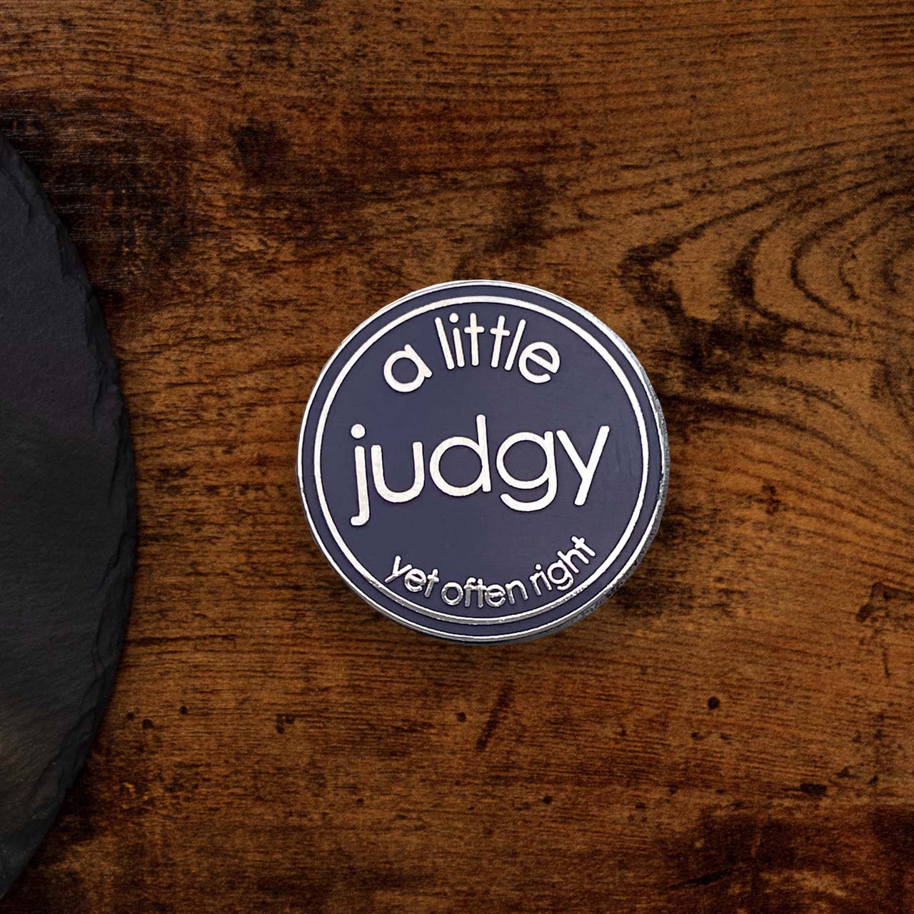 A hard enamel 'take with you token' which says "a little judgy (yet often right)" and makes an ideal little gift for anyone who is a bit prone to letting everyone else know exactly what they think about most things.