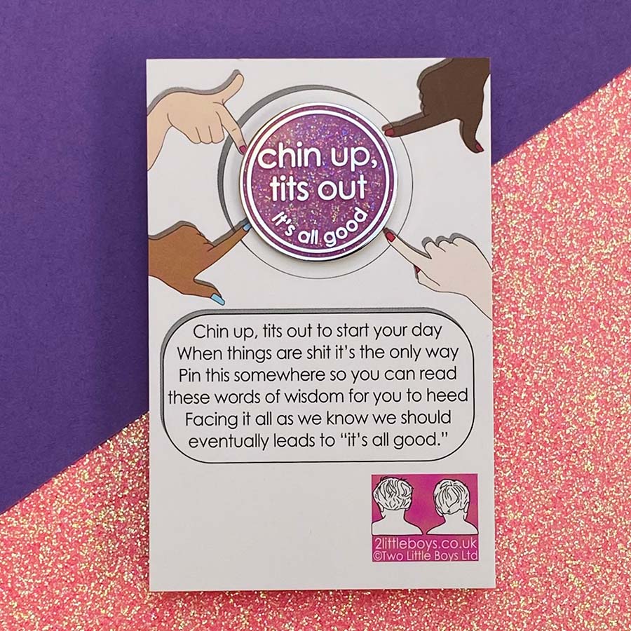 When life gets a bit "much," sometimes the only thing to do is stand tall and keep going. Our "Chin Up Tits Out" Enamel Pin is the perfect cheeky reminder to walk into any room with your head held high. It’s a bold, funny, and deeply supportive token for anyone navigating a breakup, a career change, or just a particularly difficult week.