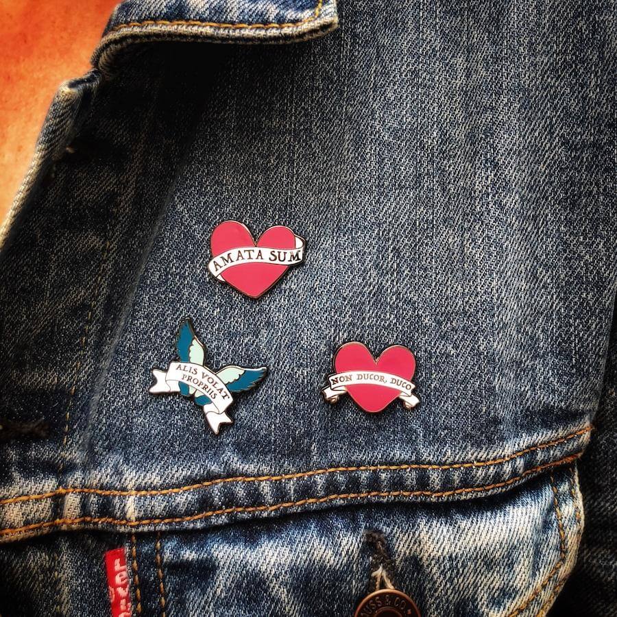 Each pin comes very neatly attached to its own backing card with the English translation prominently displayed (just in case you don’t speak fluent Latin).