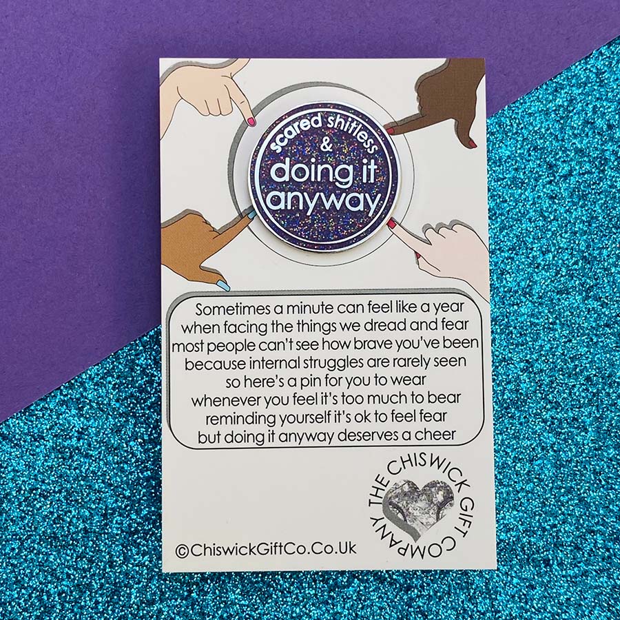 Scared Shitless & Doing It Anyway Enamel Glitter Pin